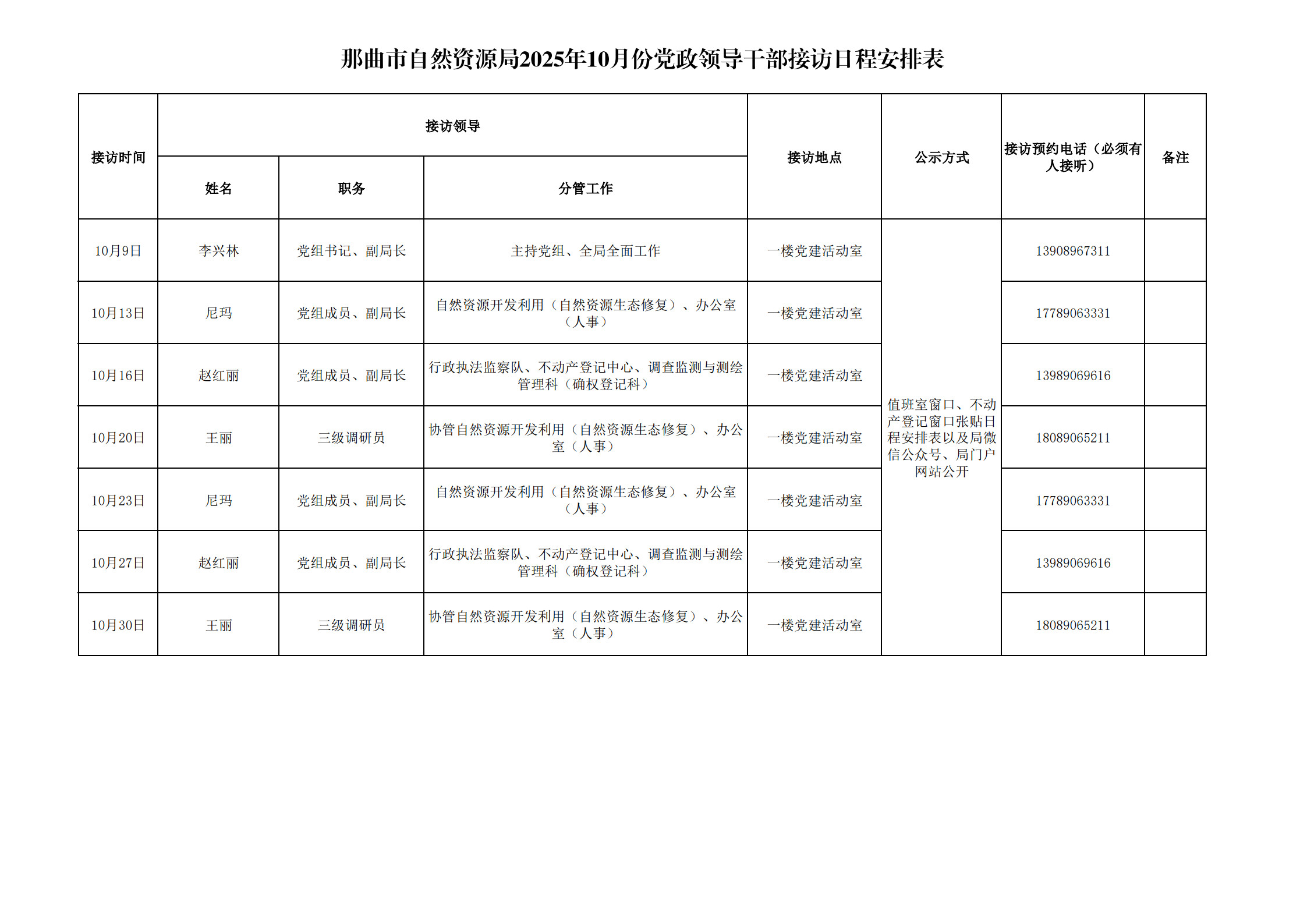 附件:2025年10月那曲市自然资源局党政领导干部接访日程安排表